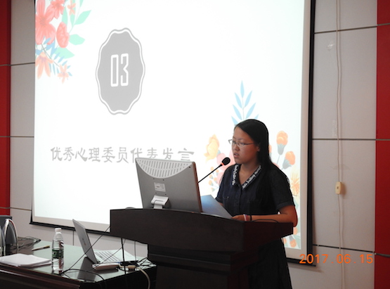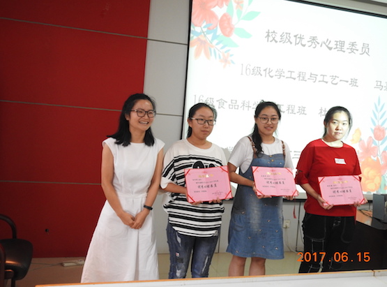 会议首先回顾了本学期各班所开展的心理活动。从各班组织的活动到心理微电影比赛,每一项都离不开心理委员的参与。本次会议同时表彰了优秀的心理委员和班级,代克红、刘艺欢、洪赛获得谈球吧优秀心理委员,杜田娇、马嘉旺、顾纪缘获得校优秀心理委员称号,16级制药工程二班和16级化学工程与工艺二班获得谈球吧优秀心理班级称号。