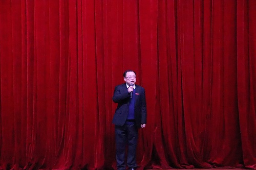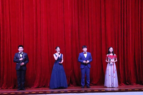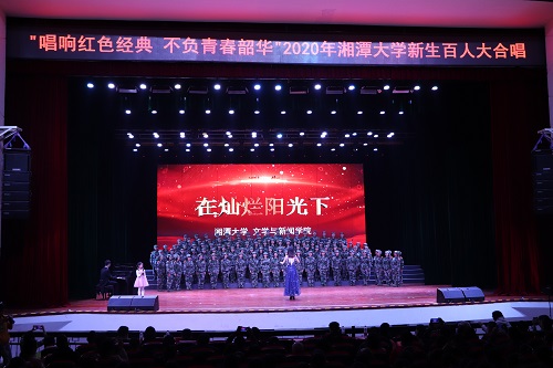 比赛伊始,刘建平副董事长以《浏阳河》为开场,活跃现场气氛,点燃同学们的热情。活动现场,参加比赛的同学们热情高涨、气势昂扬,向领导和其他观看表演的同学展现了自己积极向上的精神风貌。刘建平副董事长也说道,“2020年是全面攻坚的最后一年,明年是建党一百周年,希望今天晚上的表演都能好好表现、展现风华,祝愿今天晚上的百人大合唱圆满成功。”