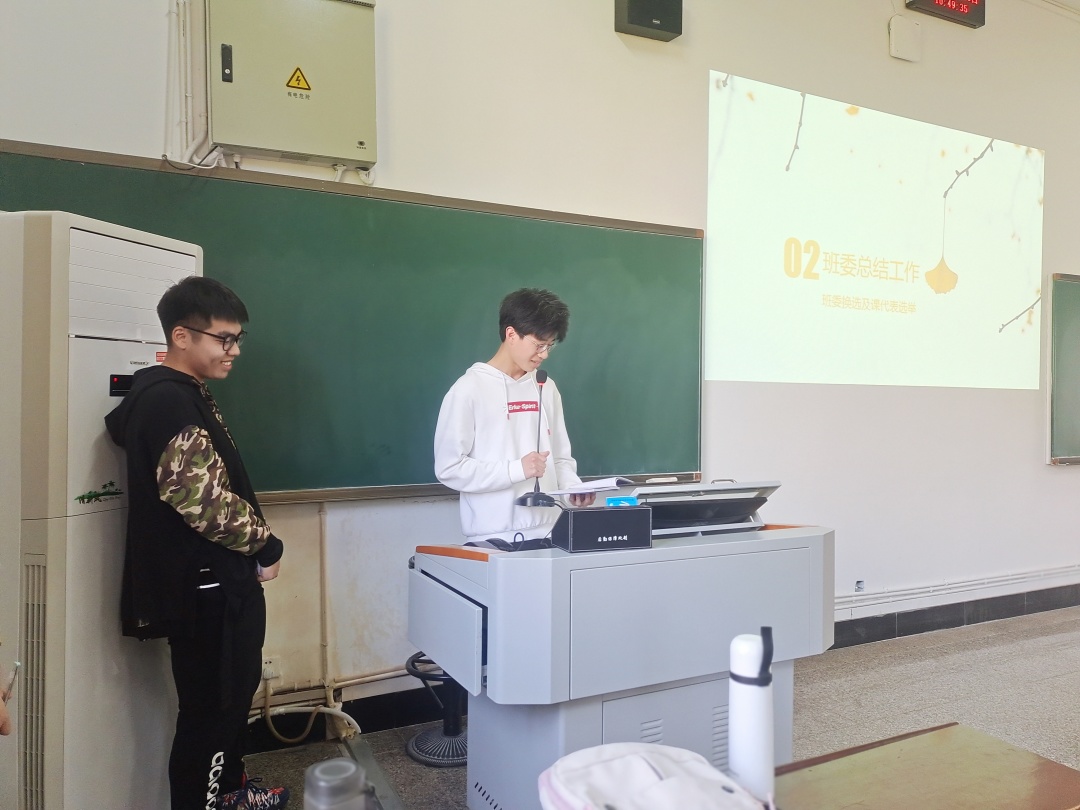随后,班委轮流走向讲台,对上学期的工作进行了总结,分析了工作中出现的一些问题,并提出解决方案。同时也对本学期的工作做出计划,表达了希望把班级建设得更好的愿望。