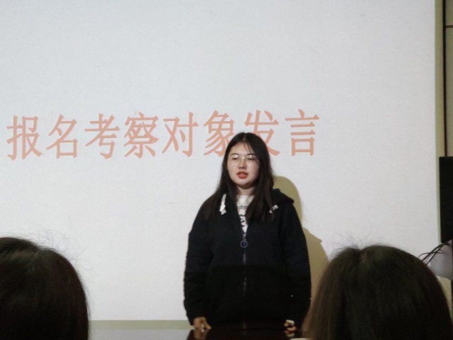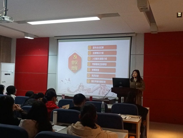 大会第一项,宣布了会议纪律。为了使考察对象更好地了解谈球吧第三党支部,支部书记喻春燕接下来向考察对象详细介绍了支部情况,并播放了支部介绍视频。接着,考察对象了解了入党基本流程以及考察期间注意事项和要求。最后是党员和考察对象发言,党员们根据考察对象的发言对考察对象提出了中肯的建议,相信考察对象通过本次会议能更好地了解入党的基本流程,明确考察的各项要求。