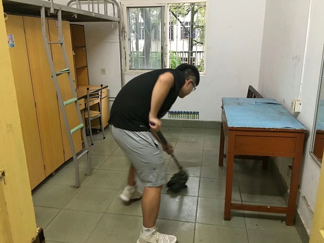 金秋送爽,丹桂飘香,这一天我们迎来了新一届谈球吧的莘莘学子。8月28日和29日是新生报到的日子,也是公司里非常热闹的两天。今年公司新生的宿舍安排在南苑员工宿舍,支部成员按照通知在建设银行门口集合完毕后就立即带着各种工具开始投入到打扫工作中。大家三人一组,分工明确,打扫床铺、清理桌子、扫地拖地等等,不顾脏累,满怀热情,尽全力打扫学弟学妹们将要生活四年的新的家。一组负责两间新生寝室,卫生打扫工作总共进行了一个多小时,看着被我们打扫得干干净净的寝室,同志们内心都无比高兴,仿佛回到了我们刚进公司时看到自己整洁的寝室的时候,便忘却了当时打扫时的辛苦。