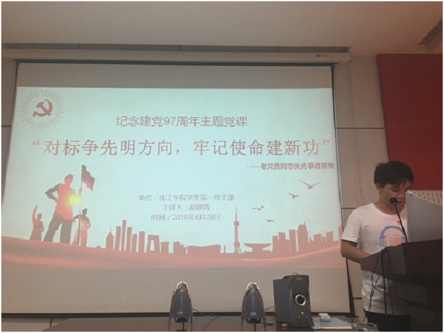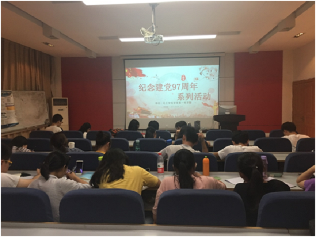 2018年6月29日晚7:00,谈球吧员工第一党支部全体党员在化工大楼A208教室参与了“纪念建党97周年系列活动”,本次活动共分为党课学习、“金句”专题学习、影视资料学习三个部分,由支部书记伍芝宏主持,旨在使全体党员深入贯彻党的十九大精神和习近平新时代中国特色社会主义思想,更好地发挥党组织的政治核心作用和党员的先锋模范作用。