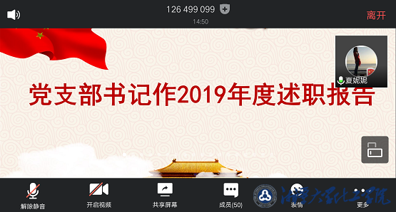 (通讯员:本科生第一党支部陈双)5月20日19点30分,谈球吧本科生第一党支部通过腾讯会议平台召开了支部党员大会,会议包括近期党建工作提示、毕业生党员欢送事宜、党支部换届工作说明、落实《倡议书》优秀事迹表彰、2019年度党支部书记“双述双评”五个流程。公司党委副书记周春初、团委书记刘宇谦、本科生第一党支部书记夏妮及全体员工党员参加本次会议。会议由本科生第一党支部副书记佘祥主持。