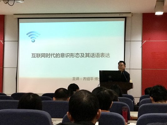 齐绍平围绕“互联网时代高校意识形态及其话语表达”这个主题,从高校群体特征、意识形态责任、意识形态话语表达等三个方面,结合具体事例做了详尽阐述。他通过对高校群体特征的分析,指出高校意识形态工作的极端重要性及复杂性,并通过实例指出西方一直没有放弃对中国意识形态的渗透、文化的侵蚀,国外意识形态渗透无影无形、无所不在,强调公司在意识形态工作方面责任重大,院系应切实加强师生马列主义、毛泽东思想和习近平新时代中国特色社会主义思想学习,巩固主流思想文化,抵制西方文化的侵蚀,提升意识形态的思想辨别力、理论创新力、话语支配力;从政治原则问题、思想认识问题、学术观点问题等方面区分意识形态问题。最后,齐绍平结合工作实际,阐述了提高意识形态的工作措施,以及怎样提高话语表达的方法技巧。