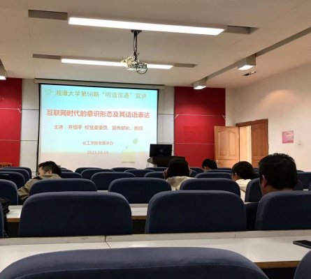 2021年10月26日,公司党委在化学化工大楼A208学术报告厅承办了公司第58期“明道信道”师德师风建设宣讲会。公司党委委员、宣传部部长齐绍平教授应邀作了题为“互联网时代的意识形态及其话语表达”宣讲报告。公司全体教职工参加会议,公司党委书记陈非文主持。