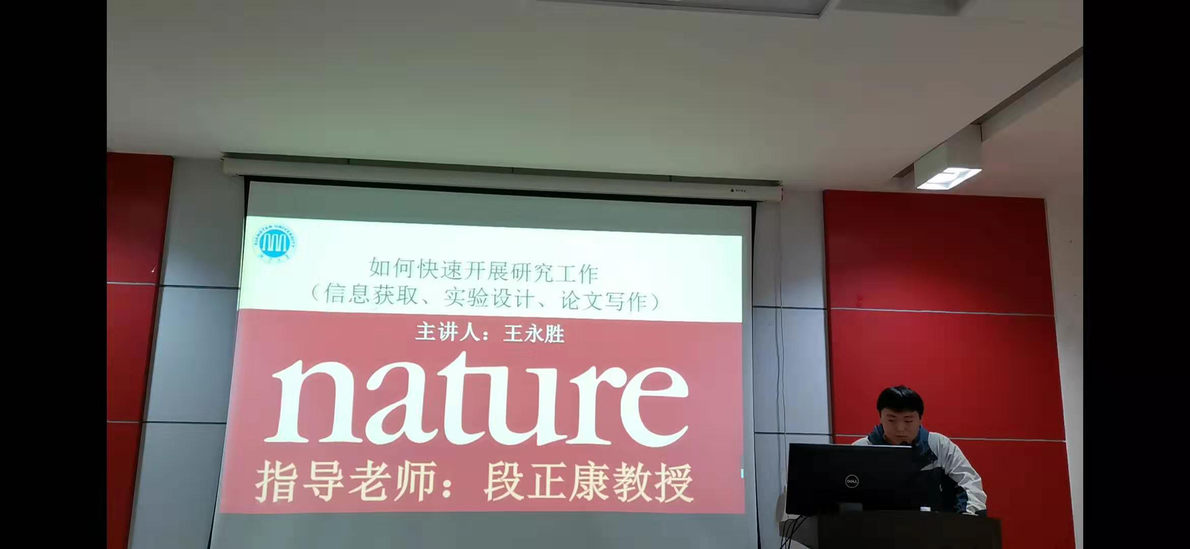第二位主讲人是2017级硕士研究生——王永胜师兄,导师段正康教授,研究方向为铜基催化剂的改性研究及应用,曾发表SCI论文3篇,公开发明专利1项,获得2019级研究生国家奖学金,他演讲的题目为《如何快速开展研究工作》。师兄一开口就尽显自己的幽默风趣的特质,以八字顺口溜“不能挂科,找个妹子;开展实验,书写论文”表示找准定位的重要性。接下来更是干货满满。师兄以自己的具体实验“氮掺杂碳包覆Cu-ZrO2催化剂”为范例,教了大家设计实验的方法步骤,获取有效信息的方式以及实验数据处理分析方法,论文写作方法和技巧等,期间向我们推荐了很多有用的工具和一系列公众号,大家纷纷都积极记录。他说:“最重要的还是一个“干”字,毕竟我们的学科是以实践为基础的学科”,赢得了大家的一致认同。王师兄有趣的灵魂深得大家的喜爱,因此演讲期间不断发出掌声和欢笑声,提问环节更是热火朝天进行着。评委熊迪老师也对他的性格表示喜爱,并谦虚地称自己在自信方面可能都不如他,建议大家向他学习,一定不要自闭。王永胜师兄的演讲在欢声笑语中结束了。