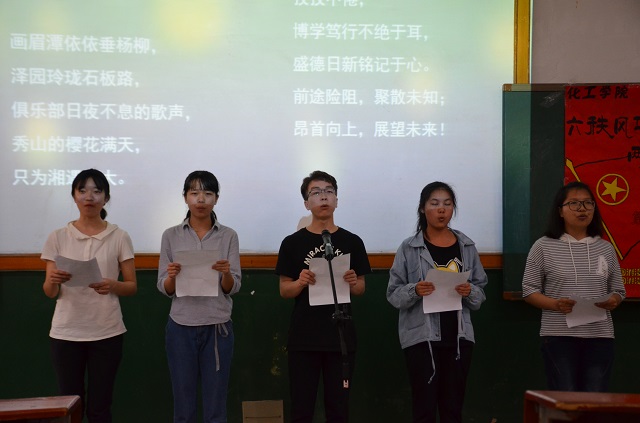 本次团校课以“‘湘’遇湘大”为主题,在课堂中,同学们按抽签的顺序以班级为单位依次上台进行PPT的展示、讲解以及诗歌的朗诵,由谈球吧第十七届团委员工会主席团成员打分。在精彩激烈的比拼中,生物工程一班的同学们以饱满的热情、从容的台风获得了评委们以及同学们的一致赞赏,拔得头筹,化学工程与工艺二班荣获第二名。