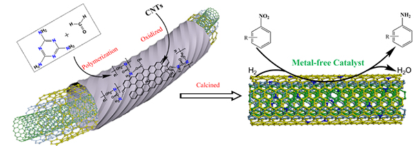 今年1月,刘平乐教授团队在催化领域顶级期刊连续发表了2篇论文。“氮掺杂碳纳米管无金属加氢催化剂高效催化硝基苯加氢反应(Nitrogen-doped carbon nanotubes as a highly active metal-free catalyst for nitrobenzene hydrogenation)”发表在《应用催化B》(一区TOP期刊,影响因子为14.229),第一作者是熊伟副教授,通讯作者是刘平乐教授。该成果通过杂原子改性得到碳纳米管非金属催化剂,因不含金属组分但却拥有媲美金属的加氢催化性能,具有极大的研究意义和环保价值。“疏水改性核壳MOFs纳米反应器中肉桂醛转移加氢制备肉桂醇:金属-N键作为活性位点的识别(Transfer hydrogenation of cinnamaldehyde to cinnamyl alcohol in hydrophobically modified core–shell MOFs nanoreactor: Identification of the formed metal–N as the structure of an active site”)在《催化学报》(一区TOP期刊,影响因子为7.723)上发表,第一作者是博士研究生崔海帅,通讯作者是刘平乐教授和熊伟副教授。该研究成果与现有催化剂相比,在大大降低生产成本和避免使用碱性添加剂的条件下,实现了高效的制备肉桂醇,符合绿色催化的原则。
