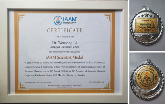 国际先进材料协会是一个由全球先进材料领域研究人员组成的国际学术组织,致力于为先进材料科学、工程和技术在世界范围内的快速发展提供交流平台,现有来自世界各国大学和研究所的会员5,0000余人。协会定期组织各种学术会议和专题论坛。IAAM科学家奖是由该协会在世界范围内根据研究人员近十年来在先进材料科学与工程技术领域所取得的工作成就进行评选并最终授予在该领域做出重要贡献的优秀科学家的一种奖项。