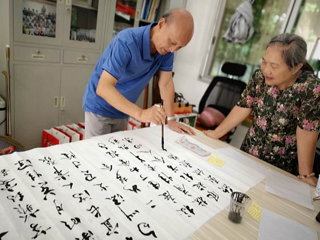 (图为金兰馨老师作诗、李国缔老师书写)