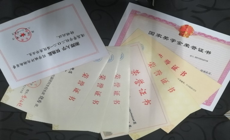 (侯艳蕊同学读研期间获得的荣誉证书)
