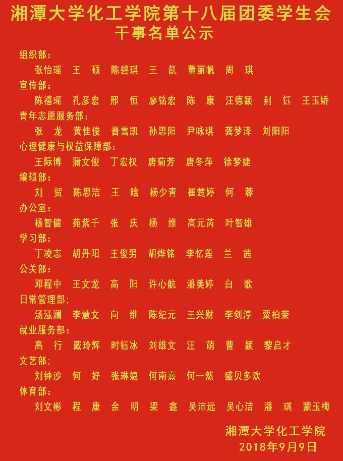 谈球吧第十八届团委员工会招新工作已圆满完成,现将干事名单公示如下