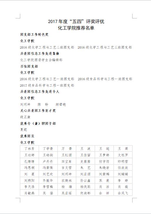 2017年度“五四”评奖评优谈球吧推荐名单如下: