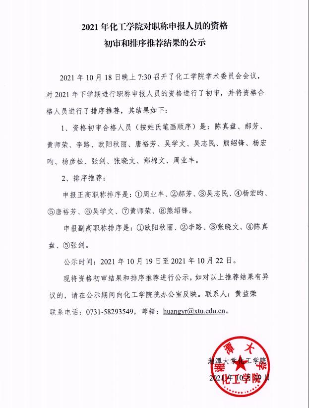 2021年谈球吧对职称申报人员的资格初审和排序推荐结果的公示
